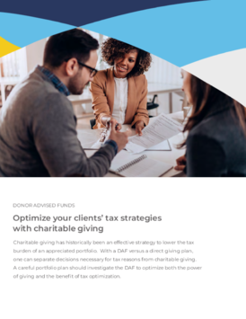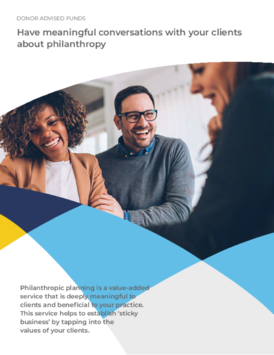 - Contribute and Invest - Some clients may not yet know where they want to give. Your expertise can grow their funds tax free while they are making those important decisions.
